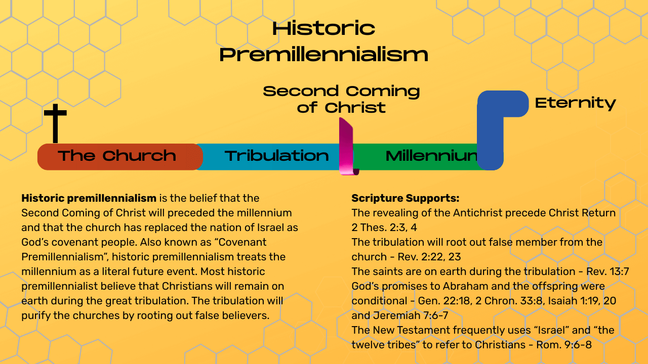 Developed in the 19th century, this view constructs a detailed historical timeline and distinguishes Israel and the church: